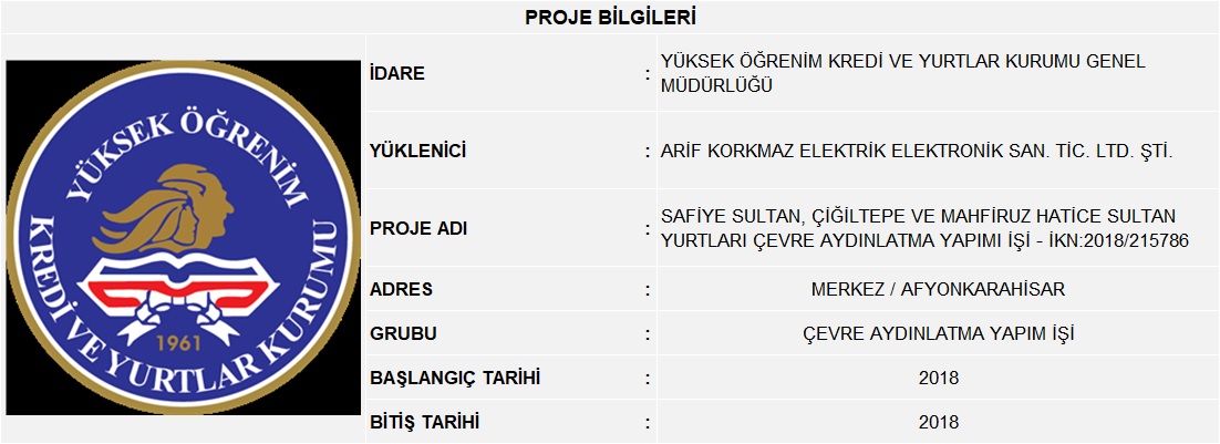 Kredi ve Yurtlar Kurumu – Afyon 3 Adet Yurt Binası Çevre Aydınlatma Yapım İşi